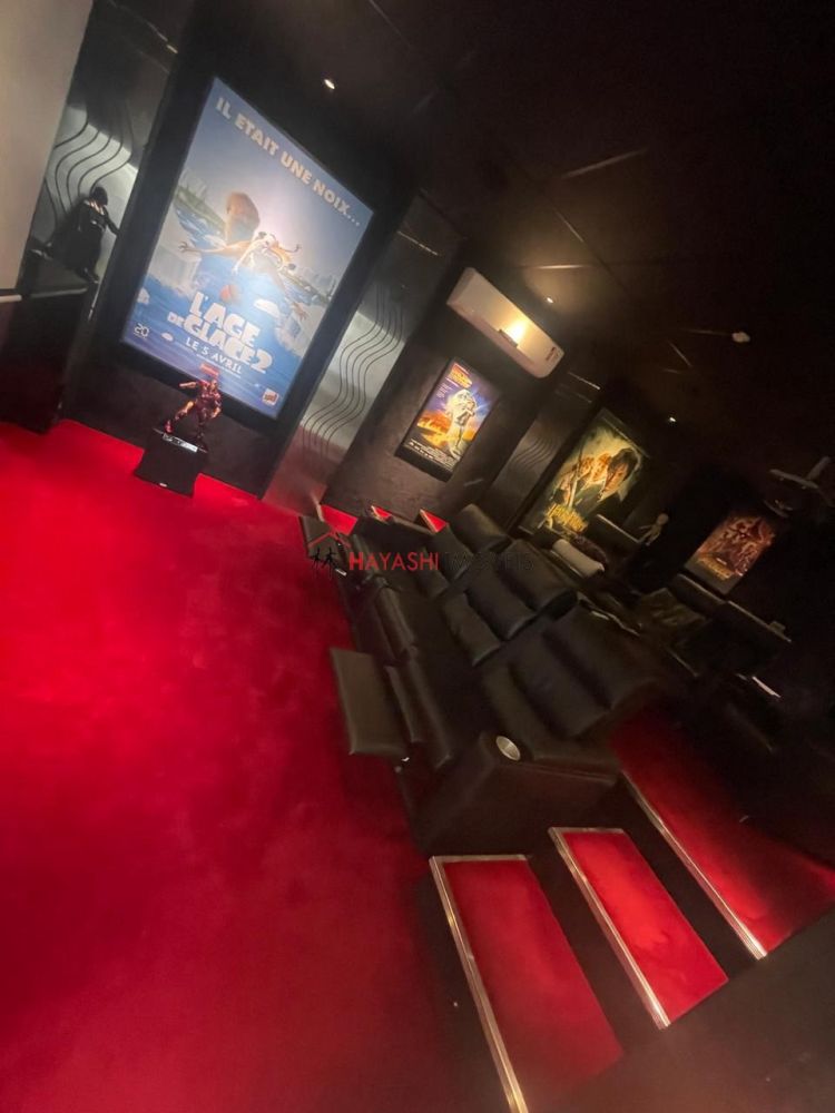 - sala de cinema (28 m2) com 7 poltronas inclinaveis, tela de 3 metros de base. Som 7.1 BeW da Grã-Bretanha e Yamaha. BD Pioneer. Projetor da Sony. Piso e paredes de carpete. Paredes acústicos. Foro acustico com céu estrelado de fibras óticas.