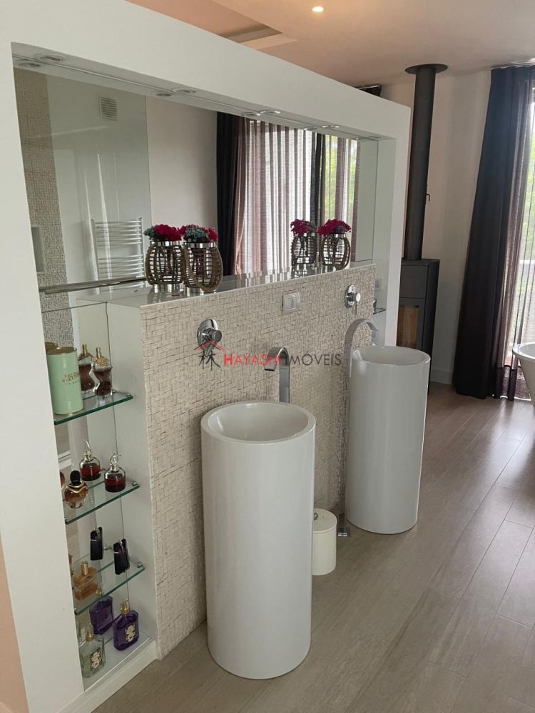 - suite master (50 m2) em open space com closet grande, com banheiro diferenciado (ducha de teto embutido tipo chuva) com sacada, com aquecedor de ambiente a lenha importada da Suíça